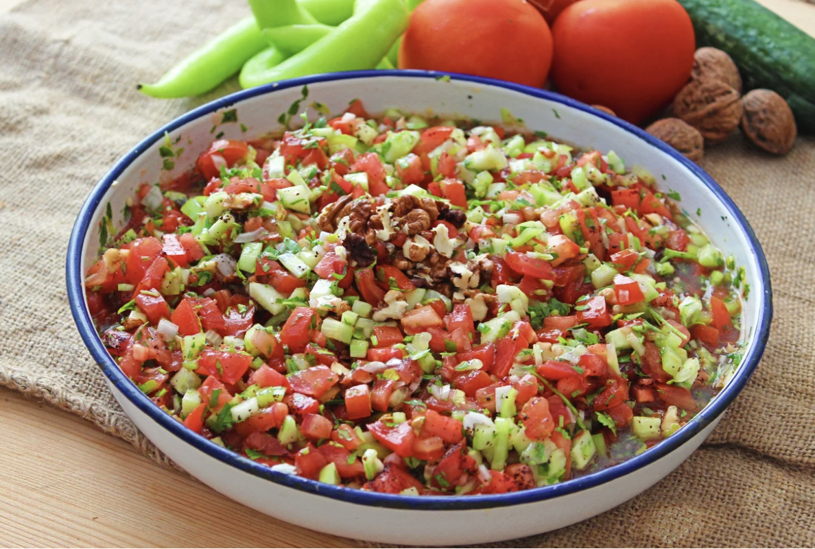 Gavurdağı Salad, named after a mountain located in the southeastern extension of the Taurus Mountains, is a very delicious salad served with Hatay local dishes. The feature of this salad, made with tomatoes, walnuts, pomegranate syrup, onion, greens and spices, is that all the ingredients are finely chopped.